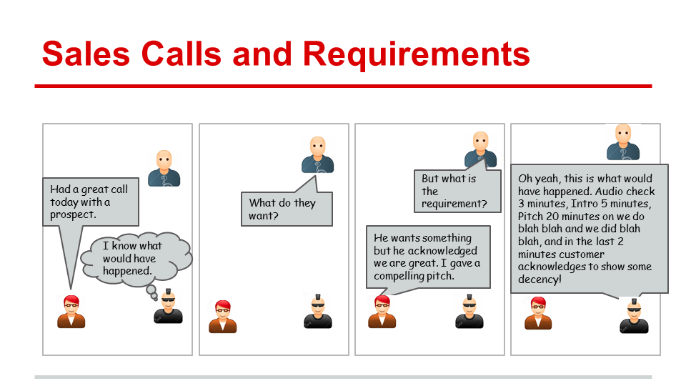 Ever had that cringeworthy moment when you're trying to tell a salesperson what you need, and all they seem to want to do is talk about themselves? Well, you're not alone! In this comic strip, we're diving into the all-too-familiar world of IT services sales, where the first meeting can sometimes feel like a monologue on "Our Company's Greatest Hits." Stay tuned for a hilarious exploration of the art of not quite listening, brought to you by our favorite tech sales superhero – Captain Company Spotlight! 🎤💬