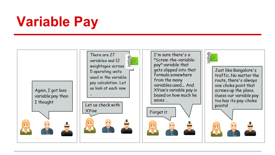 Waggz - Chuckling: "Just like Bangalore's traffic. No matter the route, there's always one choke point that screws up the plans. Guess our variable pay too has its pay-choke points!"_